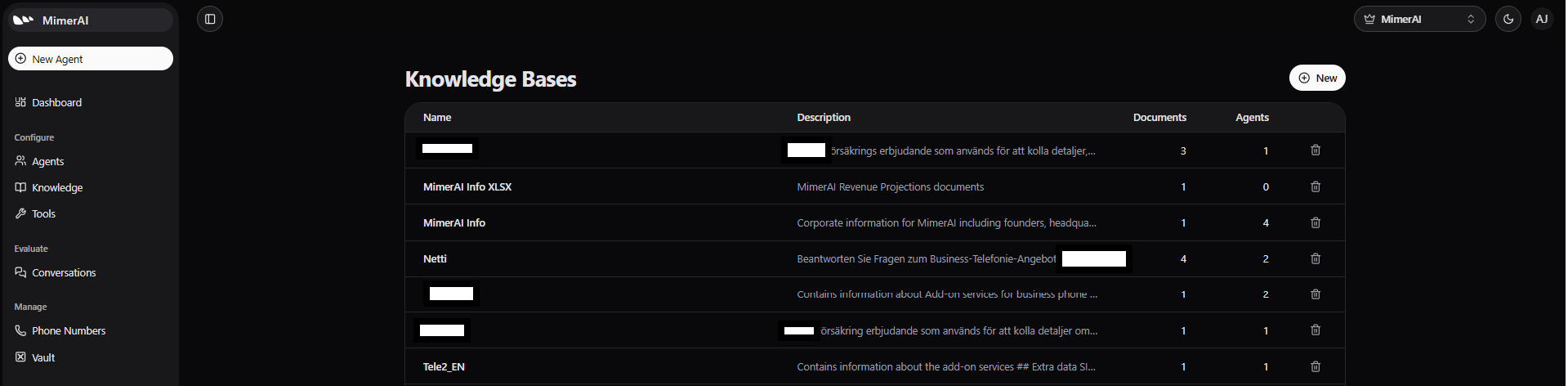 Here, you’ll create and store a list of all your knowledge bases, each can contain multiple documents of different types.